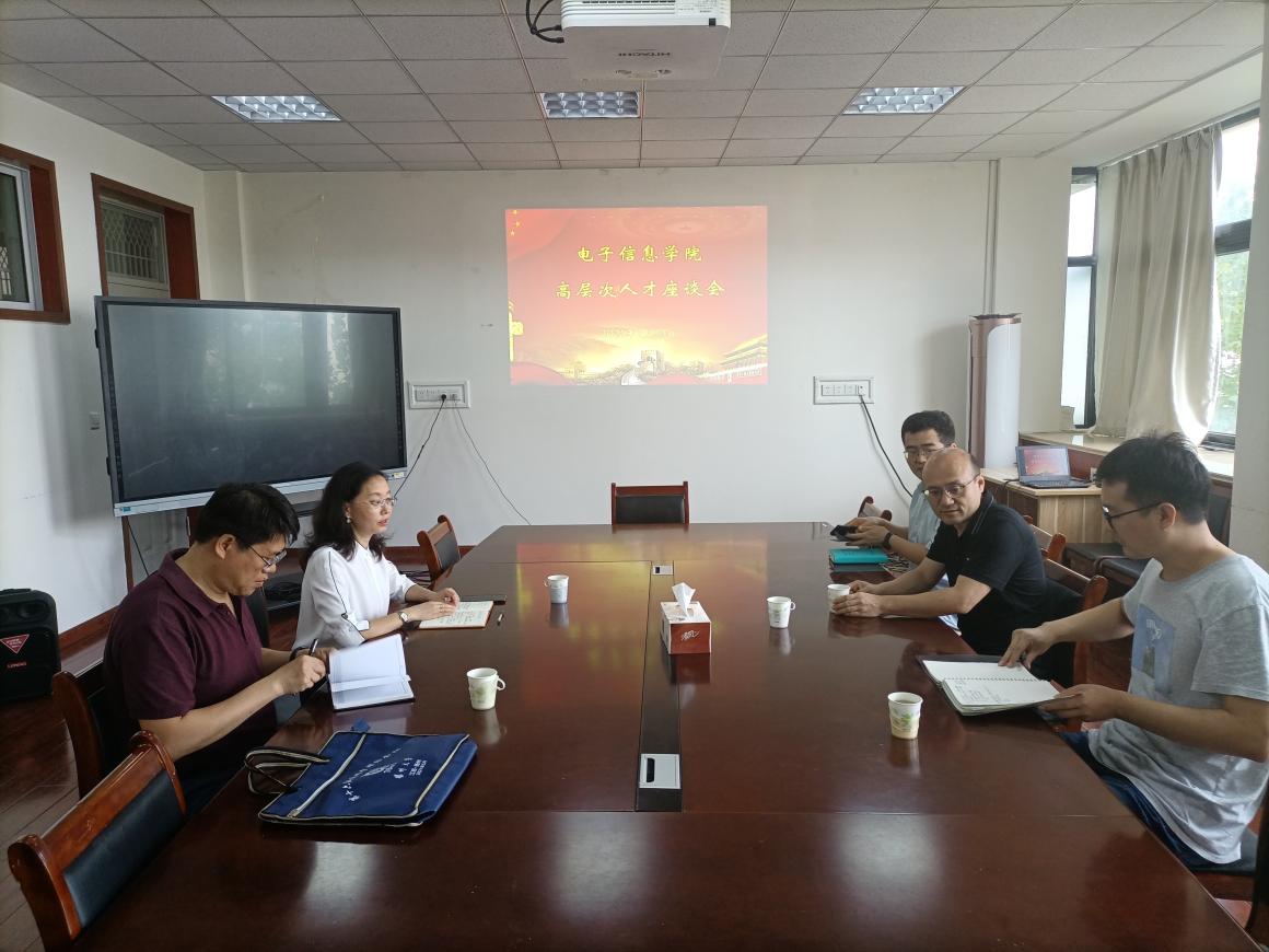 2021年9月10日,电子信息学院在诚思楼407会议室召开了高层次人才座谈会,党委书记苗洪丽、代理院长李山东与我院新引进的张子旸教授就学院发展、学科建设、科研转化等话题进行了广泛的交流,李山东院长对张子旸教授的到来表示了欢迎,希望张教授能尽快开展工作,带领学院年轻教师在科研、教学领域有一个新突破,希望张教授能尽快落下来、项目搞起来、学生带起来。